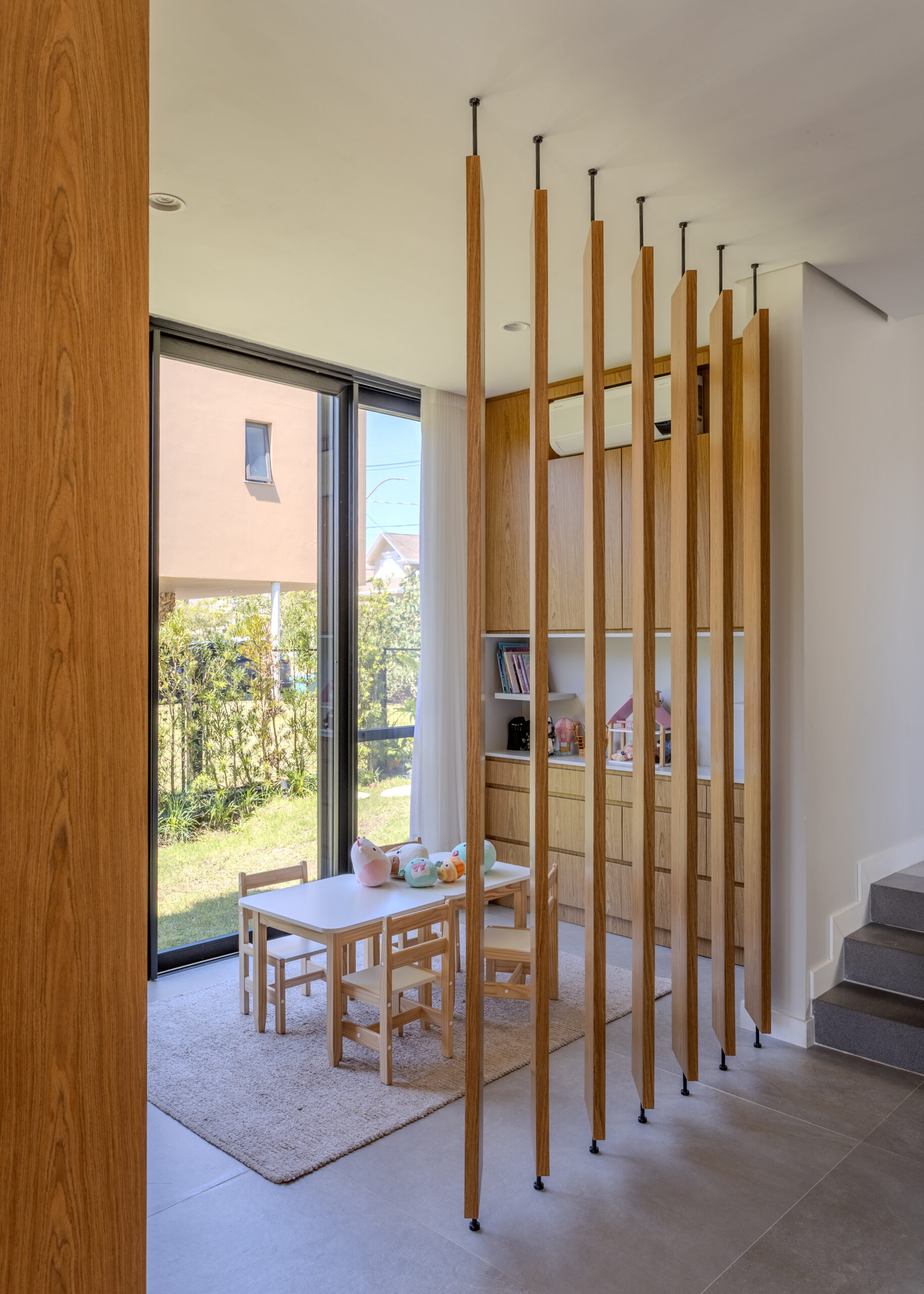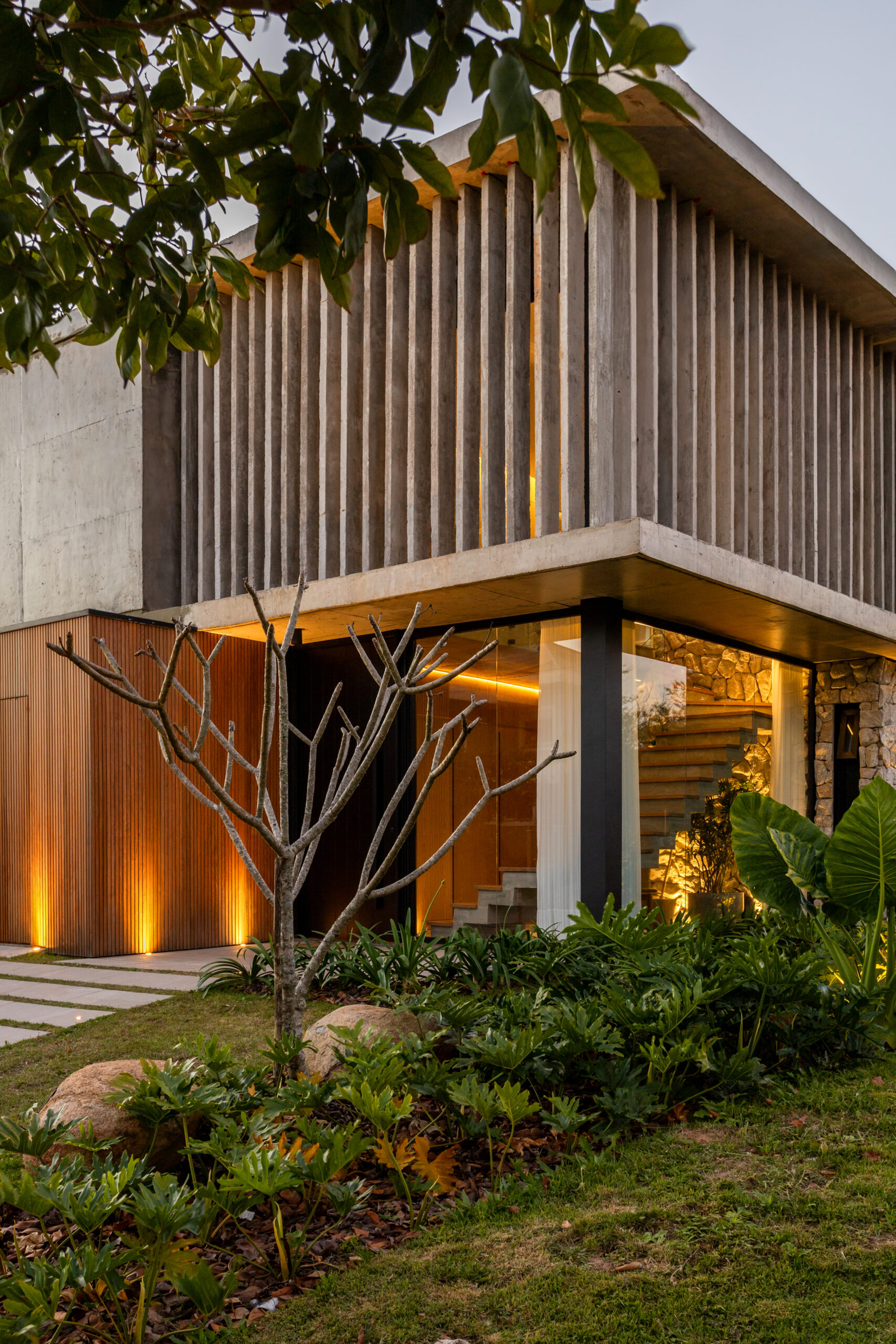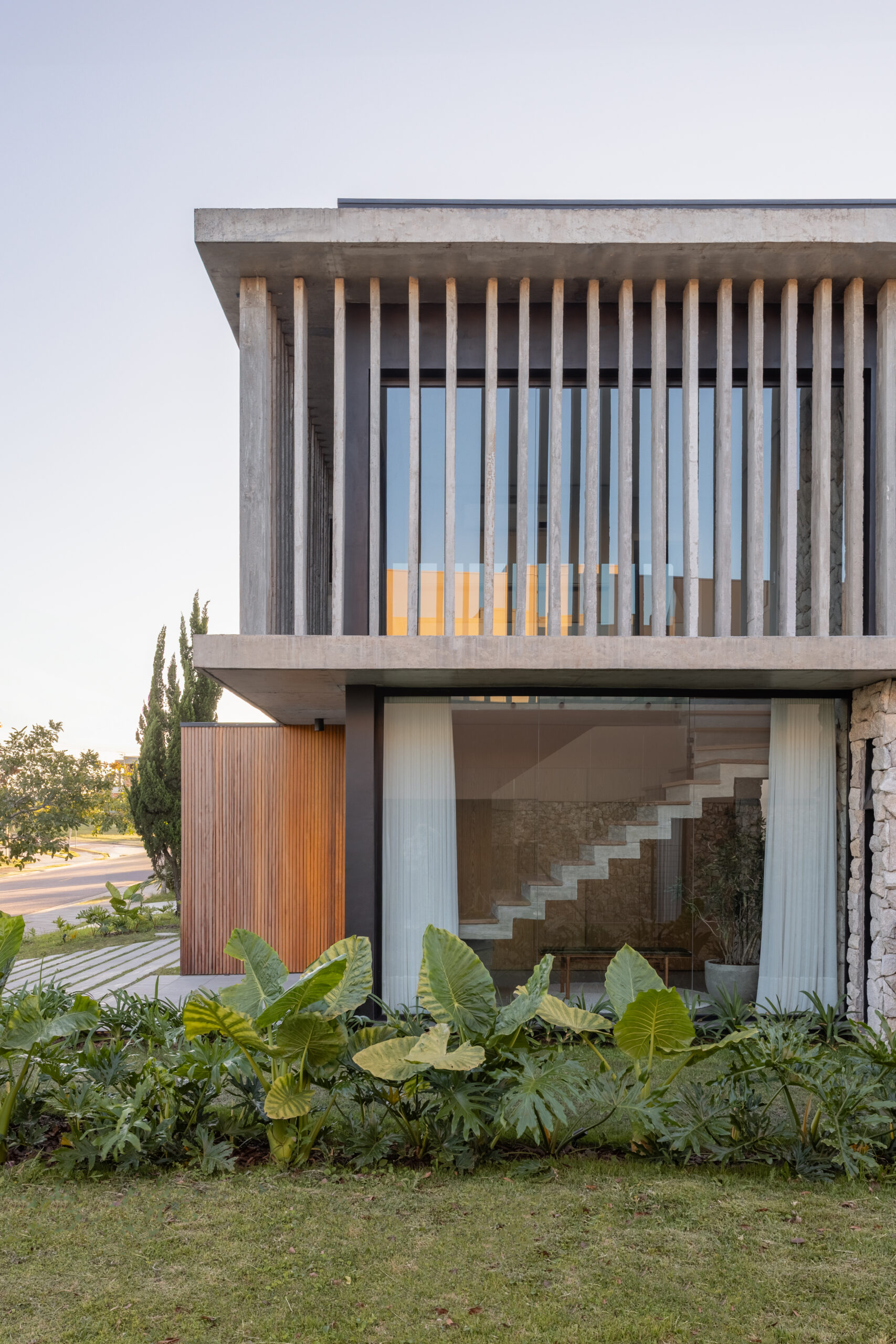 Localizada em Porto Alegre, a Casa Brise tem, no uso desse tradicional elemento construtivo, sua principal característica arquitetônica. Demarcando todo o pavimento superior, o componente auxilia na proteção solar, confere unidade ao volume, bem como cria belos efeitos de luz e sombra no interior da edificação.