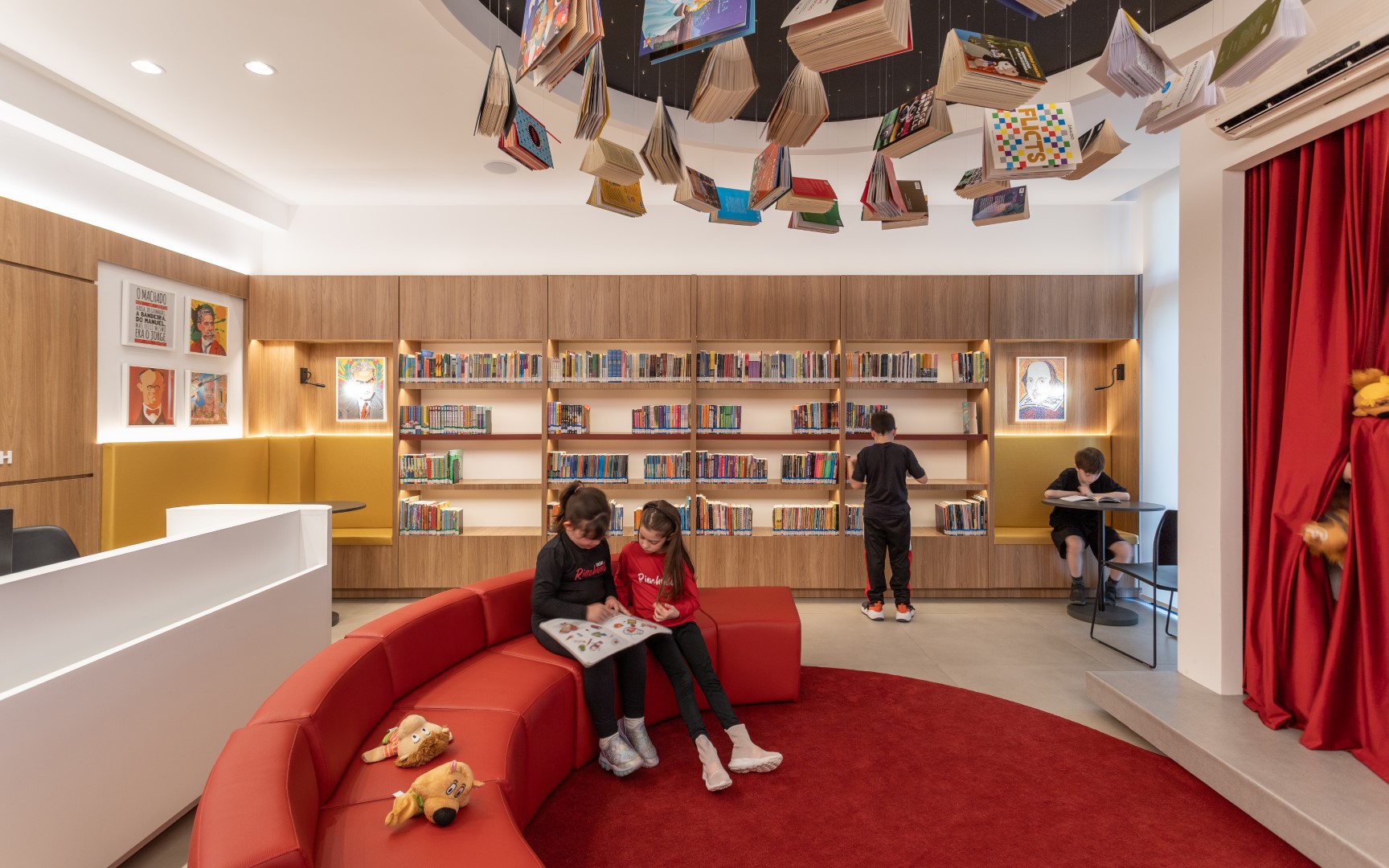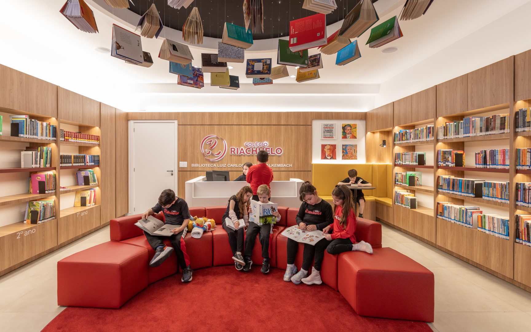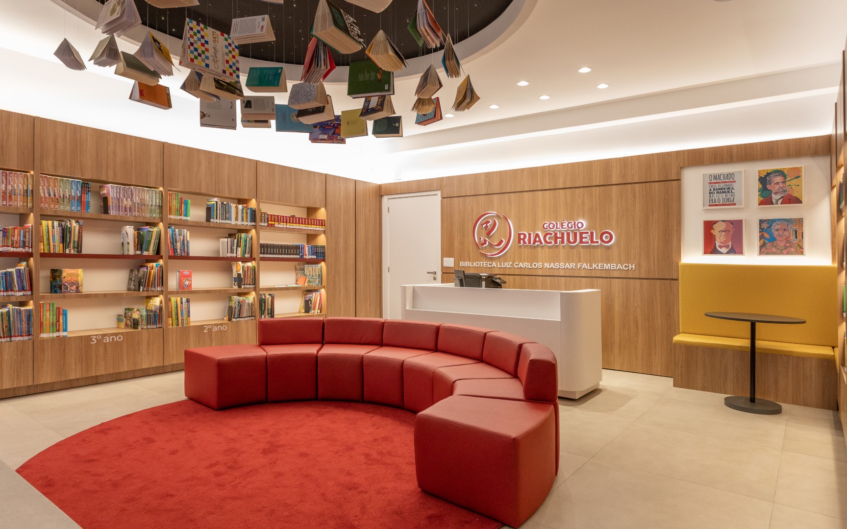Lúdica, confortável e dinâmica, a nova biblioteca – Luiz Carlos Nassar Falkembach do colégio Riachuelo – tem como conceito principal ser utilizada como ferramenta de ensino para a proposta pedagógica, incentivar a permanência dos alunos e estimular de forma cotidiana e corriqueira o hábito da leitura desde os anos iniciais da formação dos alunos.