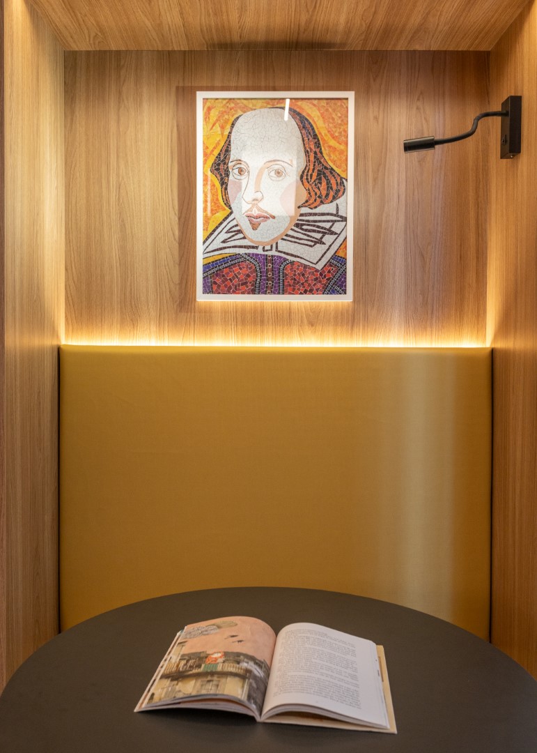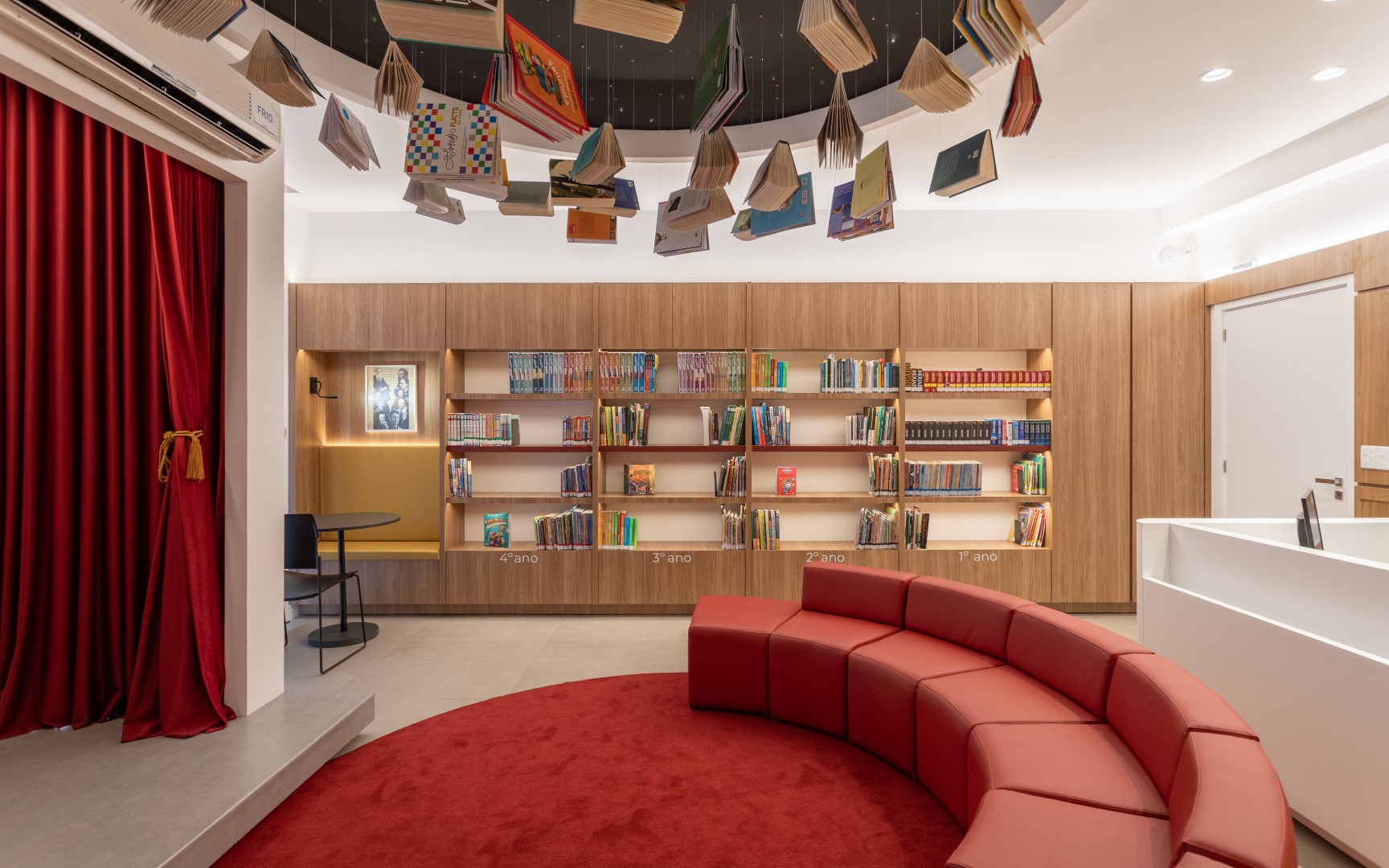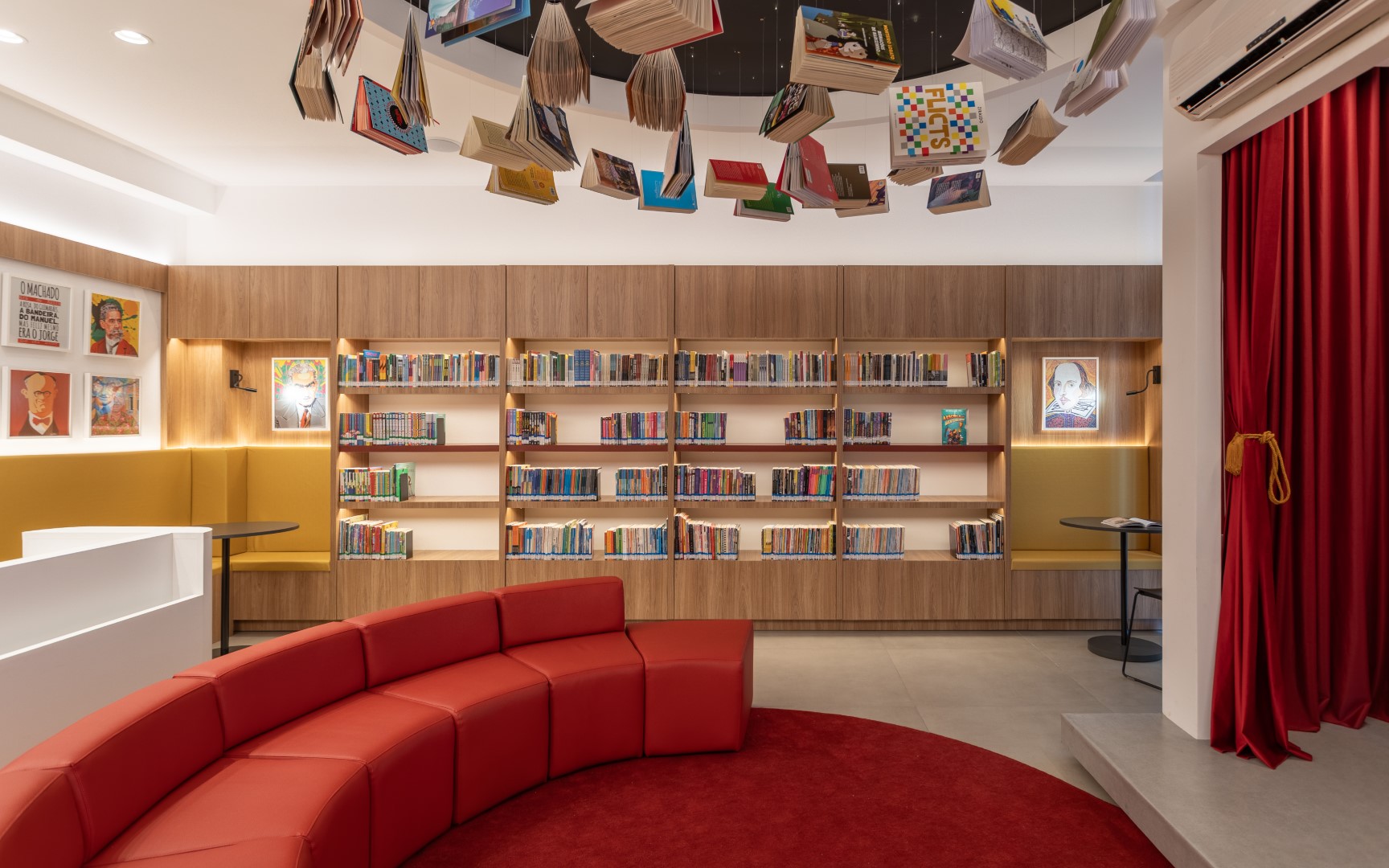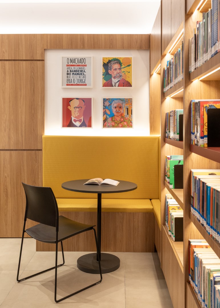 Desta forma, criamos um espaço acolhedor, pensado para todas as faixas etárias, atendendo a importantes quesitos ergonômicos, com layout e mobiliário funcionais, e de conforto, com adequada iluminação natural e artificial. Todas as decisões de projeto proporcionam bem estar e garantem que todos possam usufruir do espaço com autonomia para diferentes atividades: leitura individual, grupos de estudos, teatros e contação de histórias.