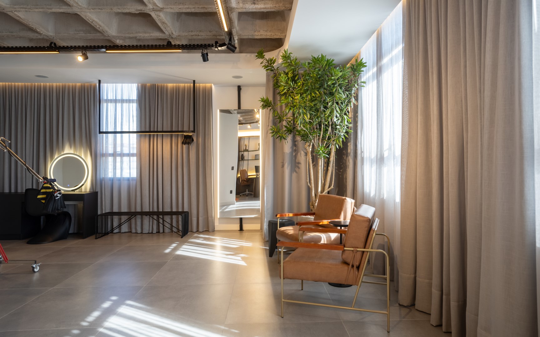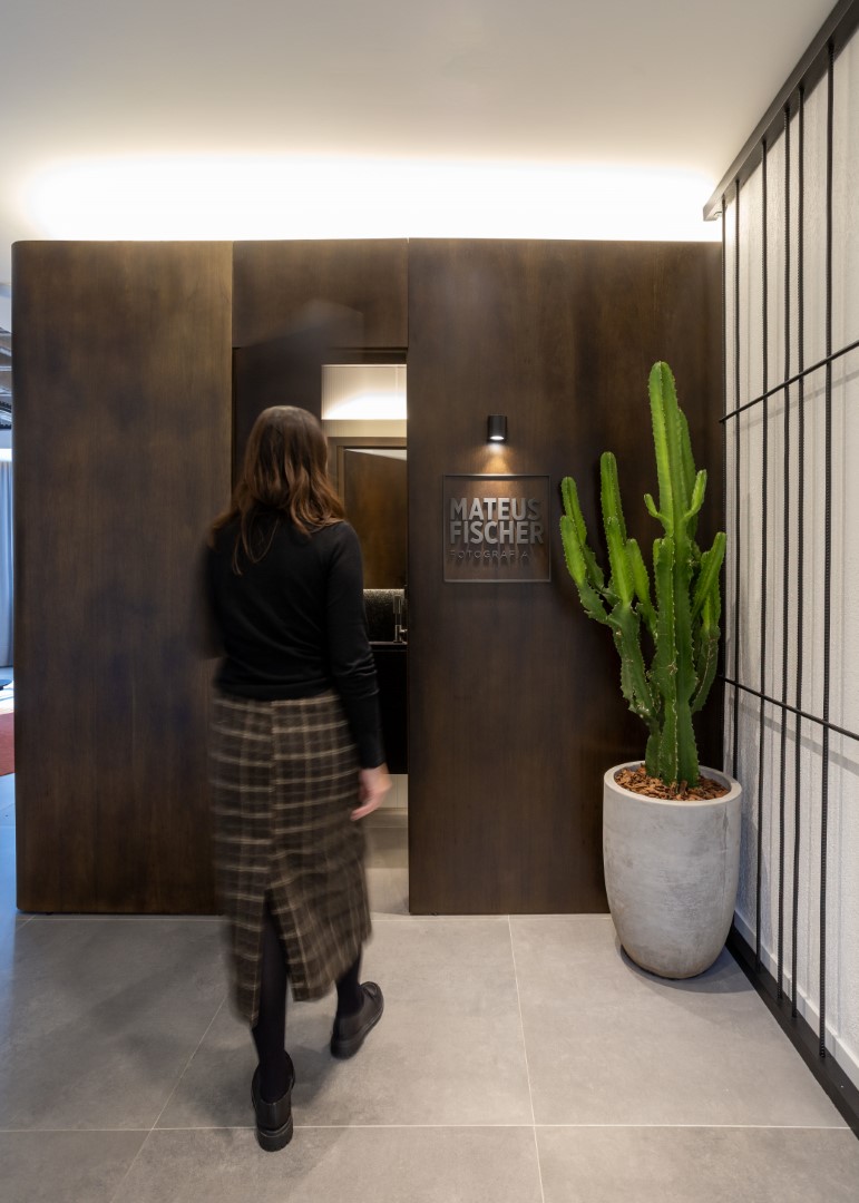 Clean, elegante e arrojado: assim é o novo estúdio Mateus Fischer Fotografia, um espaço para refletir o atual momento profissional do cliente, sem deixar de valorizar a trajetória percorrida e referências estéticas que acompanham o fotógrafo desde sempre.